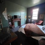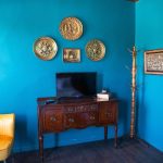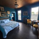 Located on the second floor. The guests will be surrounded by rich colors and various textiles showcasing theatrical aesthetics and décor. With a queen sized bed and on suite bathroom this room will leave the guest inspired and rested. Guest have access to washer and dryer free of charge. Complimentary breakfast items will be provided and will be located in the kitchen.